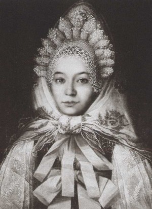 Крестьянка в тверском костюме. Неизвестный художник. 1840 г.