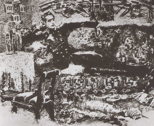 Собственноручный рисунок Н. В. Гоголя к последней сцене комедии «Ревизор»