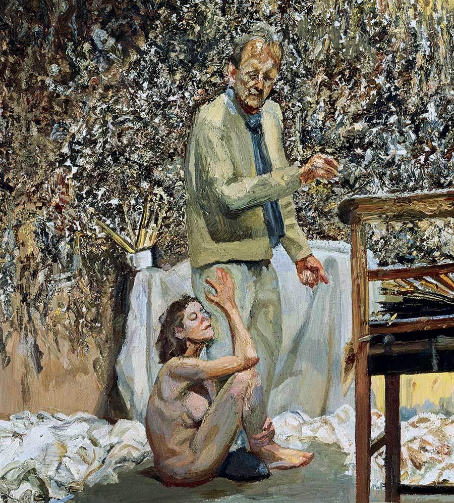 Люсьен Фрейд. Художник, застигнутый обнаженной поклонницей. Фрагмент. 2004–2005. Частное собрание. © The Lucian Freud Archive. Photo: Bridgeman Images (ниже приведена полностью).
