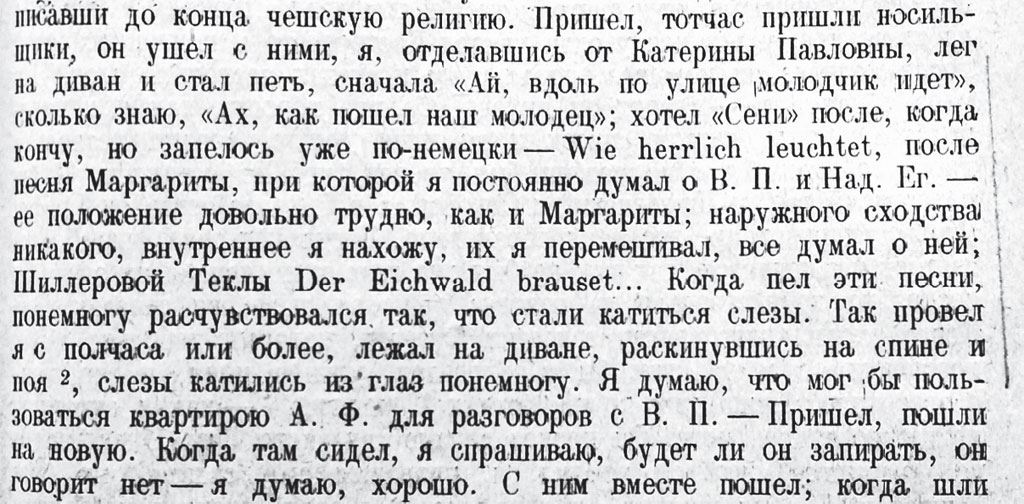 Ср.: «… и вот он начинал петь, завывающим фальшивым голосом, – пел „песню Маргариты“, при этом думал об отношениях Лободовских между собой, – „и слезы катились из глаз понемногу“» (402; см.: [4–85]).