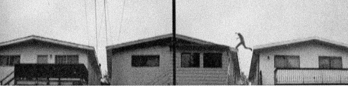 Эндрю Дадсон – опасный сосед [Т]. В серии девиантных актов [T], запечатленных на фотографиях [1], он буквально и метафорически перепрыгивает соседские заборы [2]. Двухканальное закольцованное видео под названием «Между крышами» (2005) (ил. 23) показывает Дадсона прыгающим с одного дома на другой по крышам [1]. Решив усугубить посягательство, Дадсон устроил и задокументировал перформанс «Трейлер соседа» (2003): ночь за ночью он постепенно, дюйм за дюймом, передвигал припаркованный трейлер соседа поближе к своему дому [1]. В своей нынешней серии работ, верной тому же анархическому духу, Дадсон превращает типичные объекты пригородной жизни – ограды или газоны – в монохромные картины, окрашивая их черной краской. В этих рискованных образцах лэнд-арта художник, сметая привычные границы, пытается привлечь внимание к неуклонной приватизации пригородного пейзажа [3].