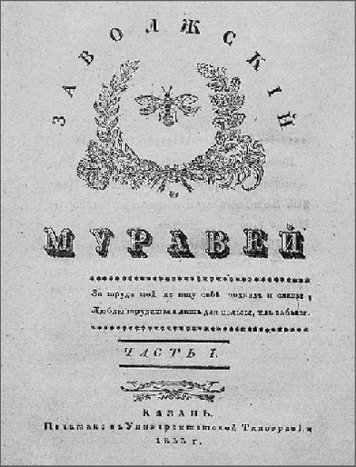 А к издательскому делу Рыбушкина подвигла не только его любовь к литературе и стремление педагога образовывать сограждан – ведь он всё-таки был преподавателем Казанского университета, и это обстоятельство не могло не повлиять на образ мыслей и характер поступков Михаила Самсоновича. Однако в то время, когда он исполнял обязанности Секретаря Отделения словесных наук, ему была предложена ещё одна почётная должность – управляющего Университетской типографией. Это случилось в конце 1830 года, а уже в 1832 году увидел свет первый выпуск периодического журнала «Заволжский Муравей». Девизом издания было двустишие:
