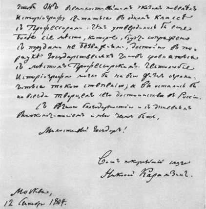 12 сентября 1804 года. Письмо к какому-то Михаилу Никитичу… Муравьеву, должно быть?! «Начатое» — это, конечно, «История государства Российского».