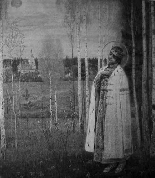 Неудачные иконописные работы совершенно обесценили Нестерова в глазах многих. Я не согласен с такой постановкой вопроса, хотя должен признать, что и последние картины художника, в особенности «Святая Русь» (на петербургской выставке 1907 года), доказывают преувеличенность тех похвал, которые ему расточались прежде. Художник, решившийся выставить такую картину как свое главное произведение, итог предыдущей деятельности, — беззащитен от нападок. «Святая Русь» — грандиозный самообман. И чувство досады, почти обиды на автора тем больше, чем очевиднее наивная убежденность его намерения, его вера в значительность и философскую глубину замысла…