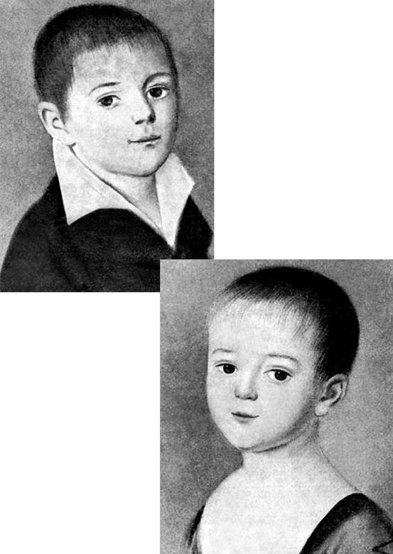 Братья Тютчевы Николай (вверху) и Федор. Парные портреты работы неизвестного художника.