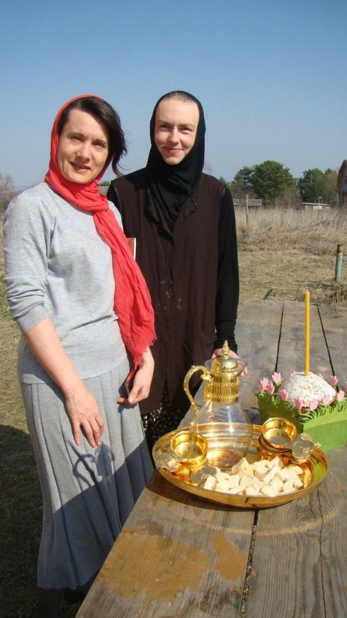 Мы приехали в скит уже вечером. Подъехали к большому двухэтажному дому, и сразу запахло коровником. Я и монахиня Георгия, старшая по коровнику, сразу пошли на вечернюю дойку. В коровнике нас уже ждали 7 дойных коров, 2 телки и теленок. М. Георгия стала налаживать доильный аппарат, а я и две взрослые приютские девочки чистили навоз и кормили коров. В детстве я часто жила в деревне у бабушки, у нас там тоже было небольшое хозяйство, поэтому вид и запах коровника меня не очень смутил. Я была очень довольна, что приехала сюда, здесь все казалось каким-то по-деревенски простым и уютным. Деревня была небольшой, в основном здесь были дачи. Осенью почти все отсюда уезжали. Места вокруг были очень красивые: вокруг тянулись бесконечные луга и поля, засаженные клевером и пшеницей, в овраге протекала небольшая речка, куда мы водили наше стадо на водопой. Через этот овраг начинался небольшой лесок со множеством грибов и ягод. На пригорке стоял храм, во времена гонений он не закрывался, почти все иконы в нем были очень древние. Пели здесь знаменным распевом, медленно и красиво. Служил настоятель протоиерей Андрей. По воскресениям он говорил замечательные проповеди.