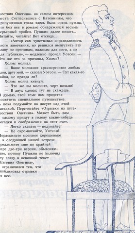 — Не скромничайте, Уотсон! Пораскиньте мозгами хорошенько и к следующей нашей встрече предложите мне по крайней мере две-три версии, объясняющие, почему Пушкин не включил эту главу в основной текст «Евгения Онегина», а ограничился тем, что опубликовал отрывки из нее.