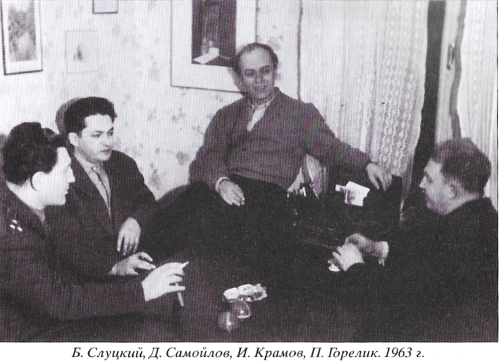 Бориса Слуцкого я знал и неплохо. Сима с ним дружил. Он иногда приходил к нам домой. <…> Прекраснейший поэт. Абсолютно сам по себе. Он, как Андрей Платонов: за сто километров его интонацию, единственную в своем роде, различишь. Они оба слышали простых людей.[168]