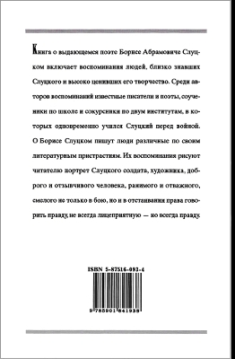 (Хоронили Алексея Елисеевича Кручёных) …Вокруг гроба стояла реденькая группка пожилых людей, над которой зеленела рубашка и звучал глуховатый голос поэта Бориса Слуцкого: «Придет время, и из легенды, в которую Крученых превратился за пятьдесят лет до смерти, он станет книгой». Завершив эту достаточно крамольную для представителя Союза писателей СССР тираду, Слуцкий прочитал тоже не самое лояльное по тем временам, но как нельзя больше соответствовавшее происходящему, ахматовское «Когда погребают эпоху…» и отошел в сторону.[153]